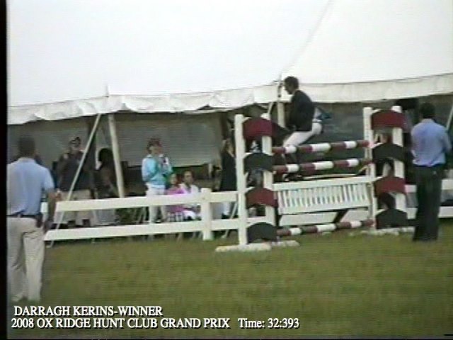 ![]() (VIDEO CLIP- DARRAGH KERINS 2 RIDE JUMP OFF, The award ceremony, Alan Griffin, the presenter of Grand Grix ribbons., ( a great rider himself) presents Darragh Keins, with a handshake and the first place ribbon Along with a big smile. Congratulations! DARRAGH KERINS The 2008 OX RIDGE HORSE SHOW GRAND PRIX WINNER "First Place". Darien, Connecticut. Photo: Copyright THE ARTIST SHOWCASE\Darrin Andrew La Morte\All Rights Reserved.